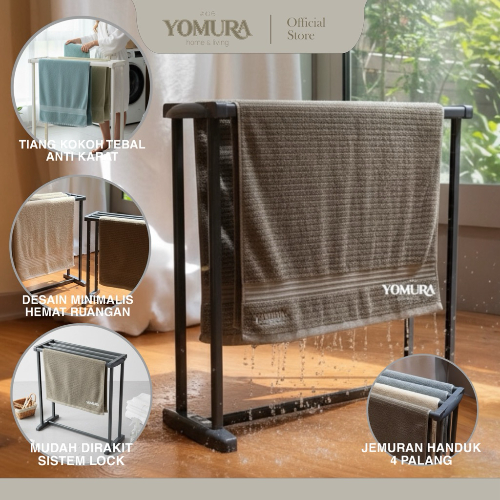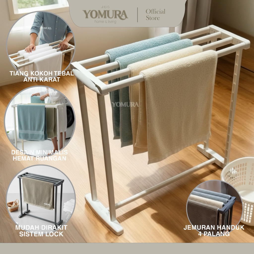 YOMURA Jemuran Handuk Plastik Rak Handuk Anti Karat Kuat Kokoh Tebal Premium Dengan Sistem Lock Jemur Pakaian