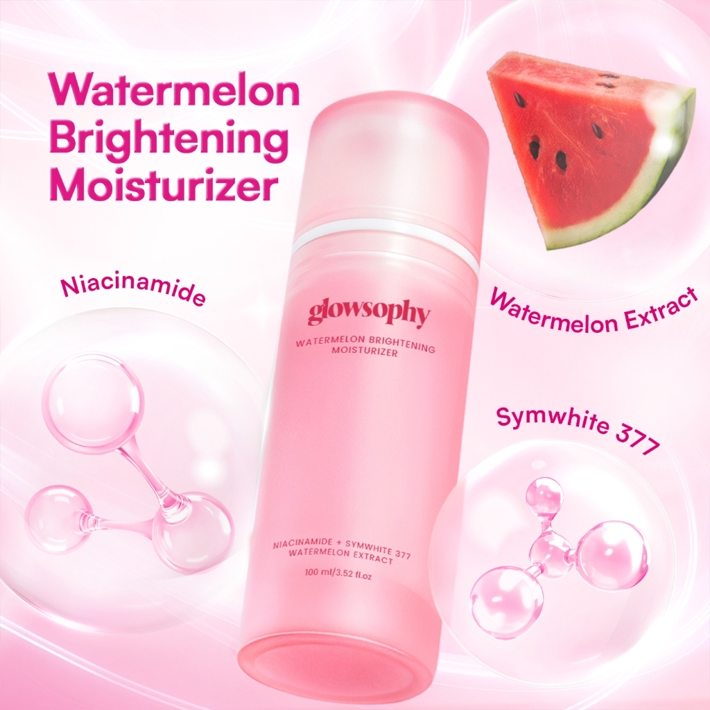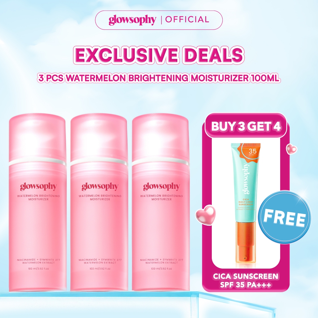 [FREE SUNSCREEN] Glowsophy Bundle 3Pcs Watermelon Brightening Moisturizer Niacinamide Mugwort Gel Day and Night Skincare 100 ml Gel Pelembab Wajah Mencerahkan Kulit Bercahaya Brightening Cream