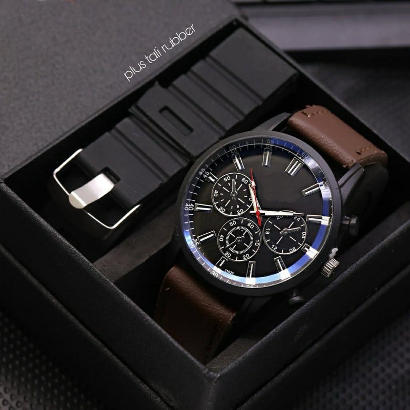 JAM TANGAN PRIA Best Seller! Jam Tangan Swis Made Pria / Cowok Kulit Fashion 7878Ls Chrono Variasi Free 1 Tali Rubber &