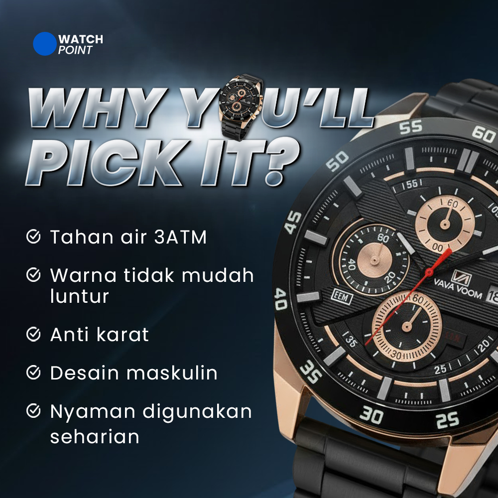 JAM TANGAN PRIA WATCHPOINT VV-020 | VAVA VOOM Jam tangan Pria Anti Air Stainless Steel kalender Original Arloji Cowok Fa