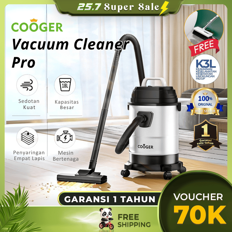 COOGER Vacuum Wet And Dry Pro Penyedot Debu 18L Metal 14IN1 Wet Vacuum Cleaner Vacum Cleaner Besar Sedot Debu Basah Kering Vacum Blower Dry Penyedot D