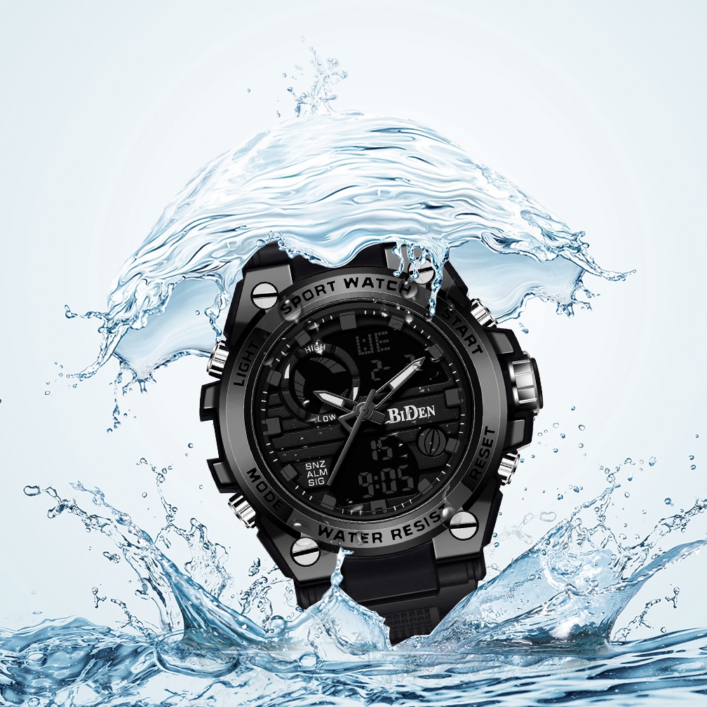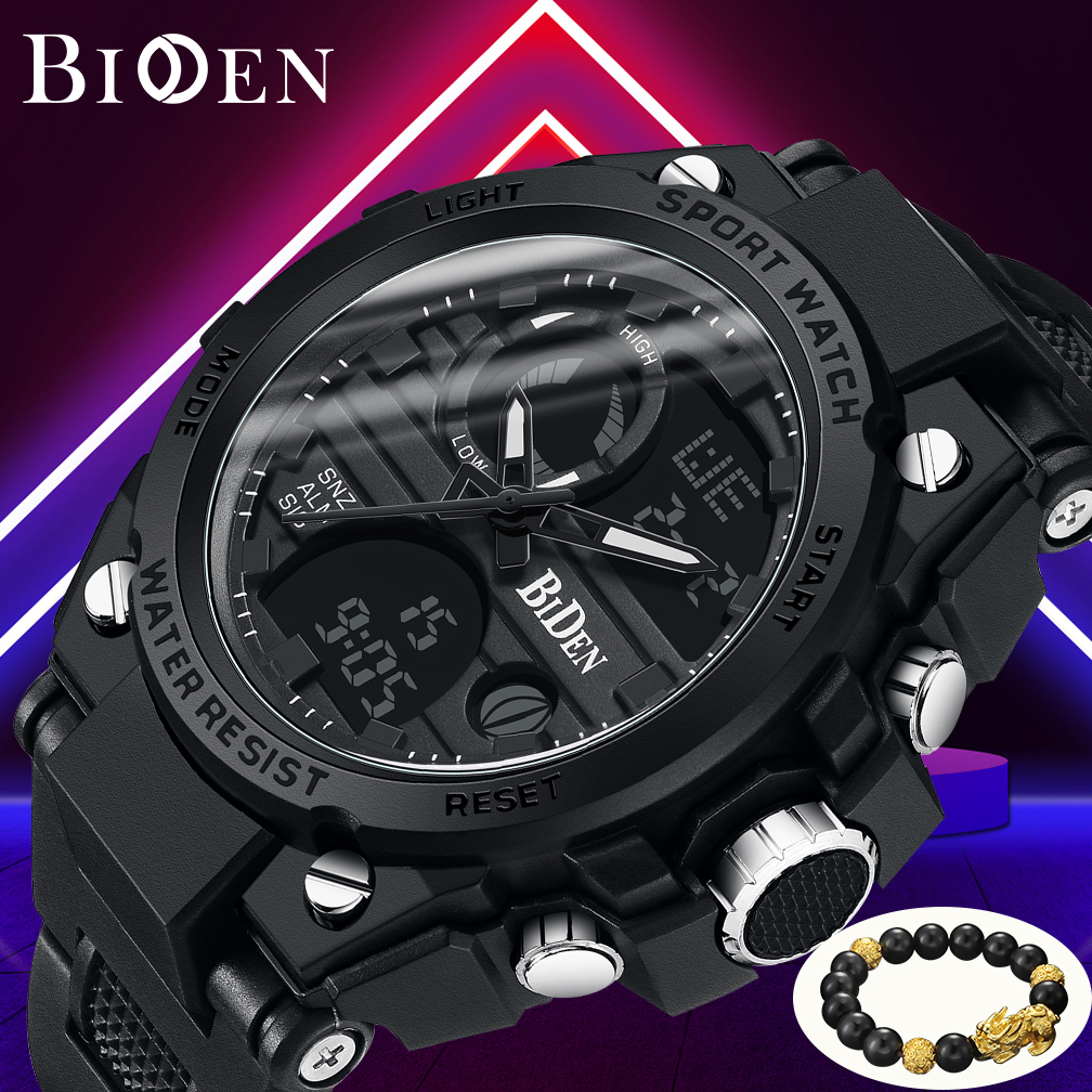 JAM TANGAN PRIA BIDEN Jam Tangan Pria Digital&Analog Anti Air Olahraga Militer Pria Tali Silikon Luminous Jam Tangan Cow