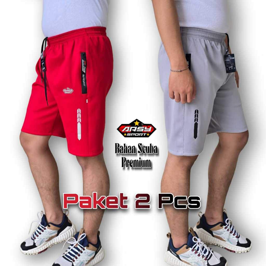 Arsy Sport - Paket 2 Pcs - Celana Running Pria Wanita Short Pant Gym SC003 - Bahan Scuba Elastic Adem Nyaman