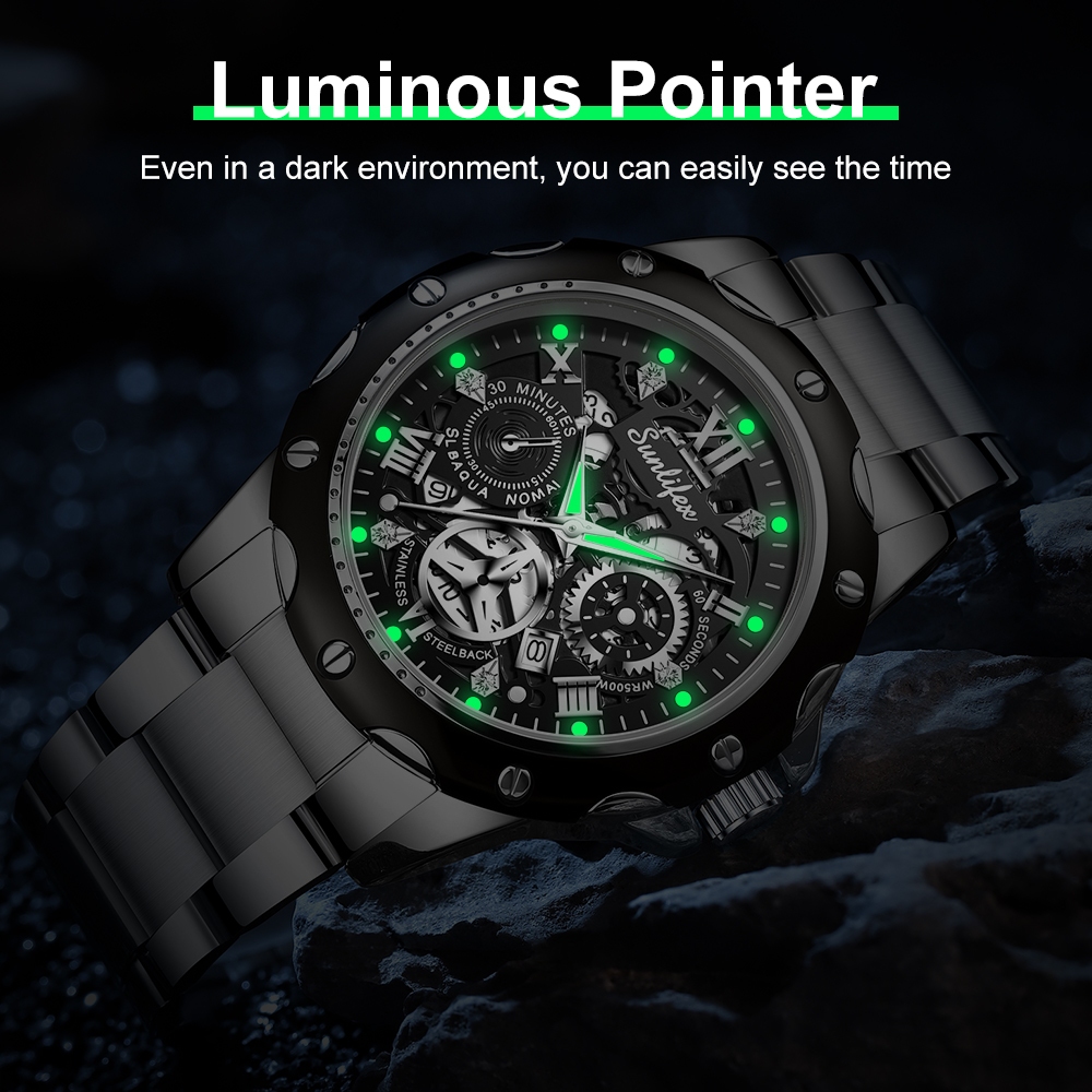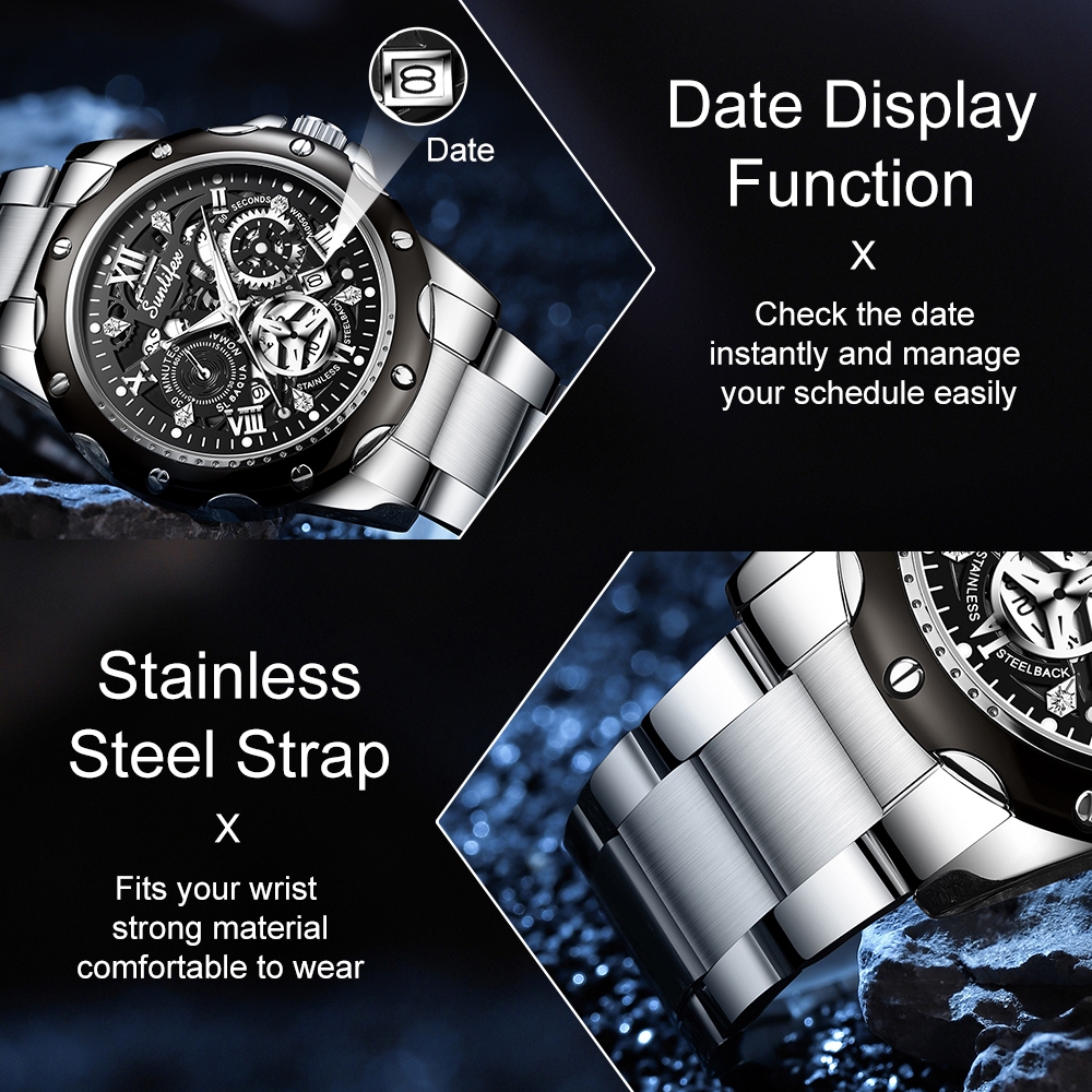 JAM TANGAN PRIA Sunlifex Jam Tangan Pria Kuarsa Luminous Tanggal Kasual Tali Stainless Steel Jam Tangan Cowok 8080