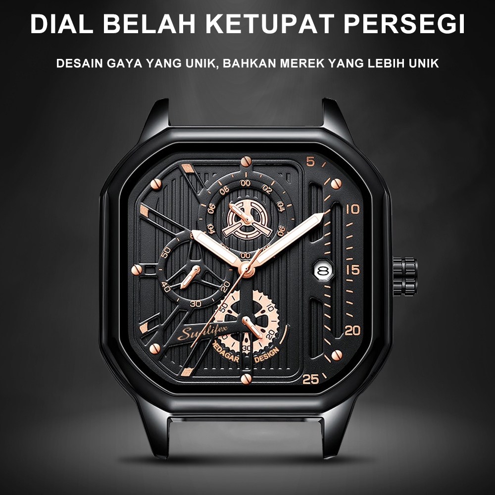JAM TANGAN PRIA Sunlifex Jam Tangan Pria 9095 Kuarsa Olahraga Kasual Tali Kulit Pria Jam Tangan Cowok