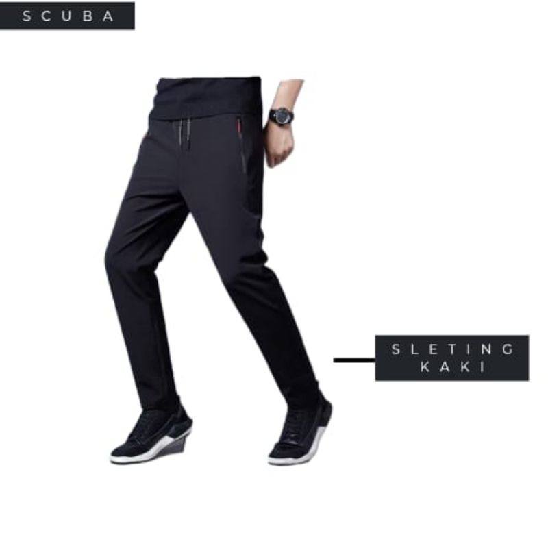 Celana Training Olahraga Dewasa Bahan Scuba import Saku Waterprof Celana Olahraga Pria Fitnes Gym Runing Senam Yoga Wani