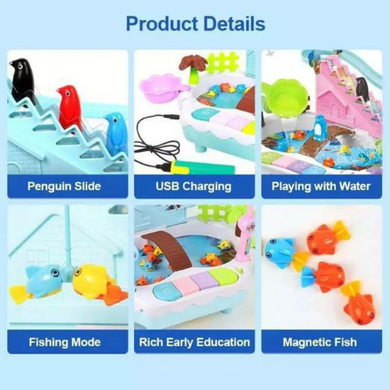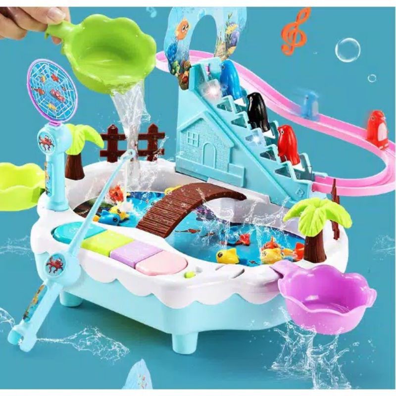 MAINAN PANCINGAN 3 in 1 PANCINGAN IKAN MAGNET SELUNCURAN PENGUIN MINI PIANO MODEL TERBARU ORIGINAL READY STOCK