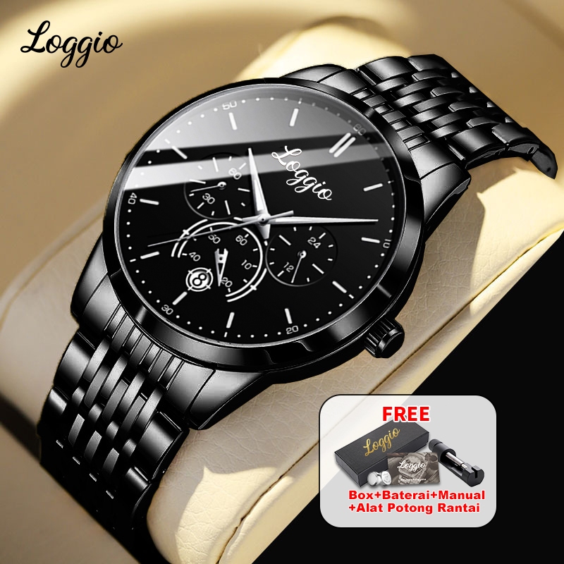 JAM TANGAN PRIA Loggio Jam Tangan Pria Original Display Kuarsa Cahaya malam Anti Air Tali Stainless Steel Santai Mode Ja