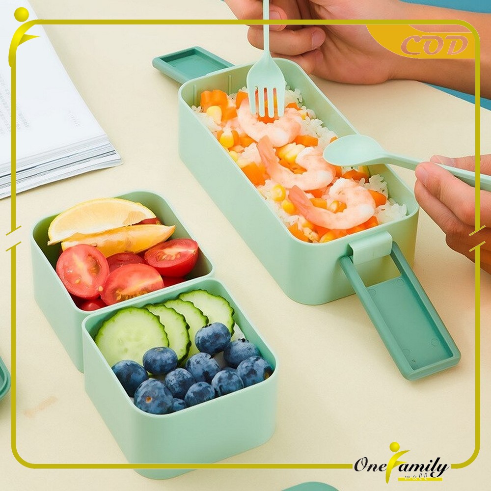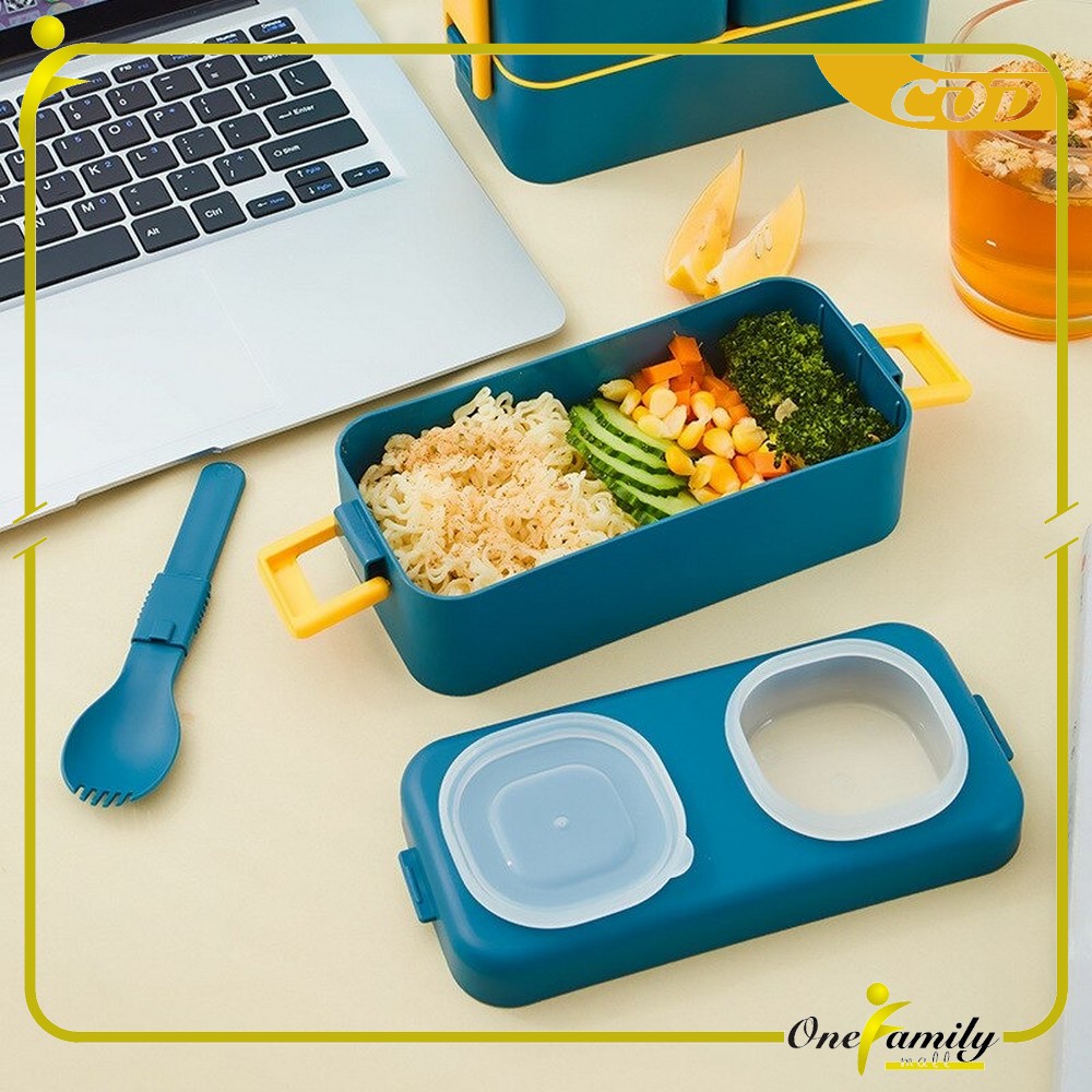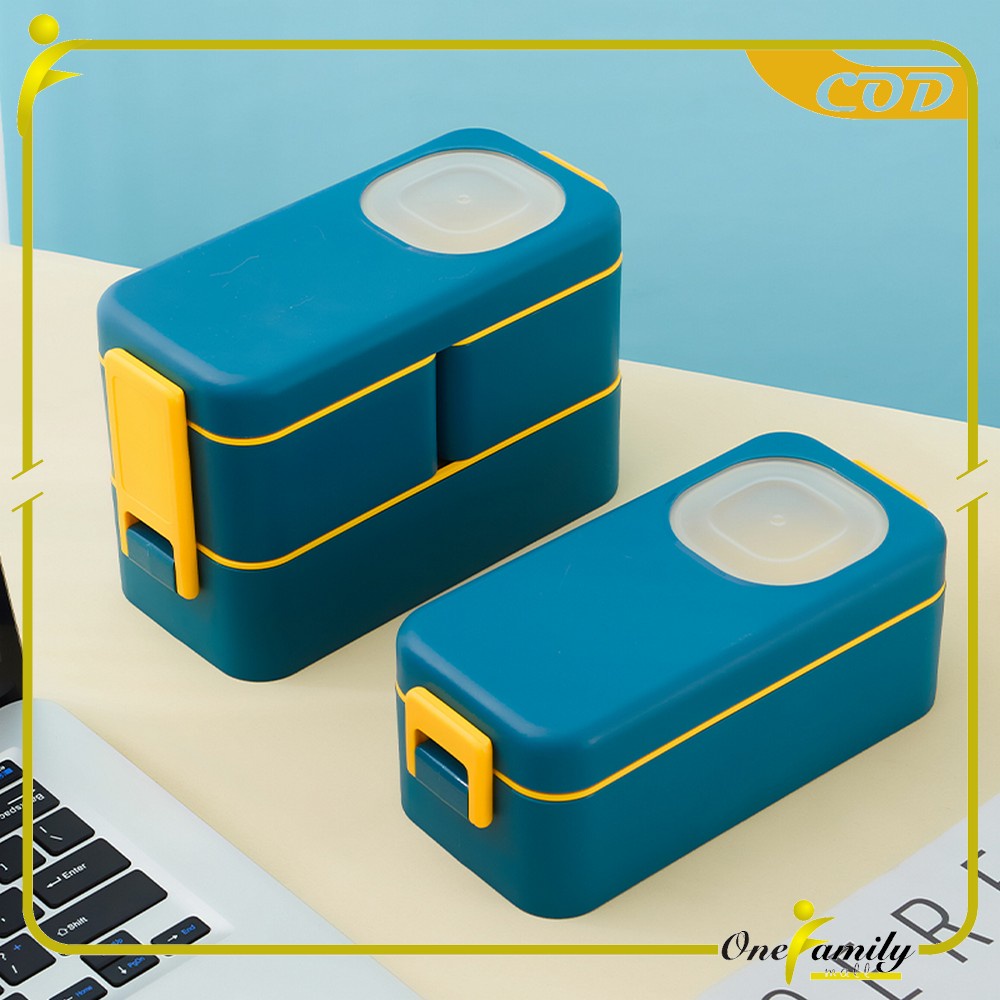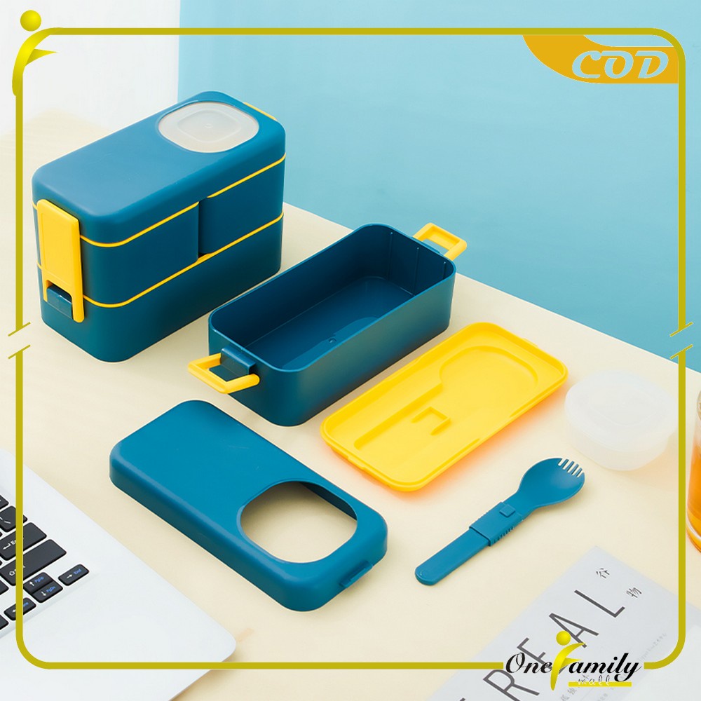 ONE-C779 Kotak Makan 2 Tingkat Portable 1050ML Ada Sauce Cup / Lunch Box 2 Layer / Rantang Makanan Set Anti Tumpah