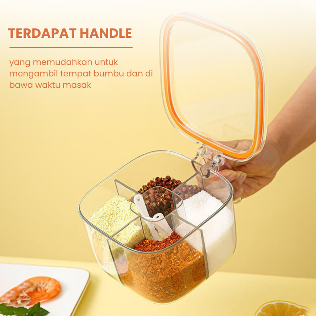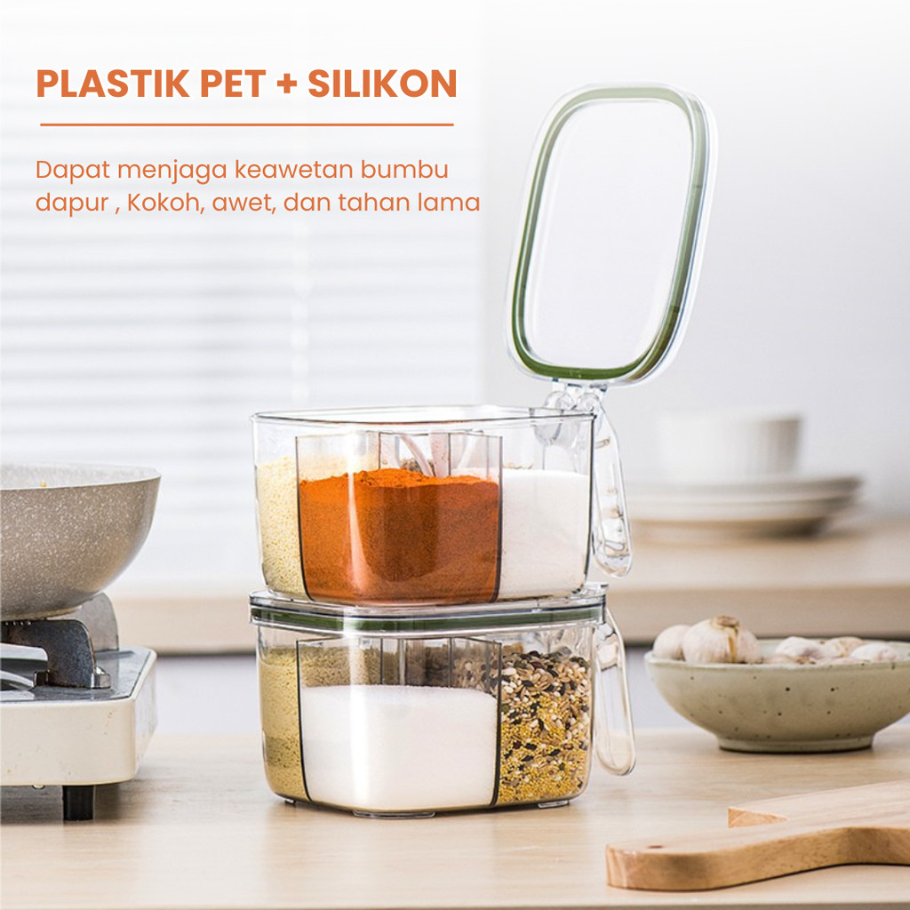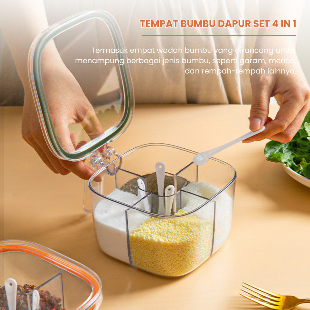 LALAFEI | Tempat Bumbu Dapur 4 Sekat Wadah Serbaguna / Tempat Bumbu Kotak Set Portable / Tempat Gula Garam