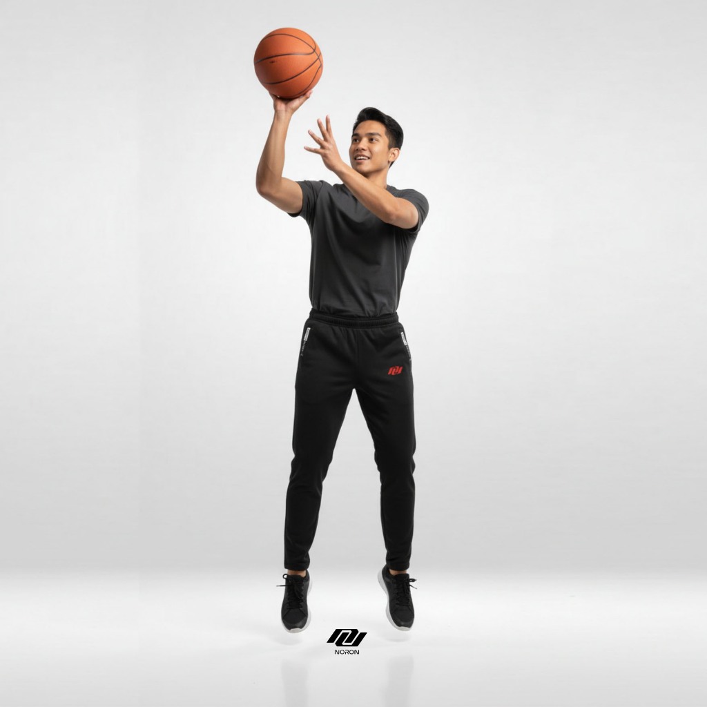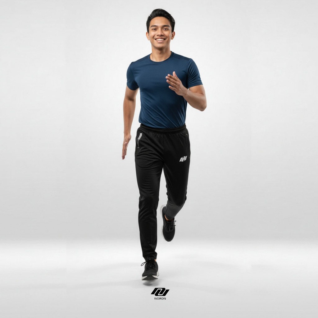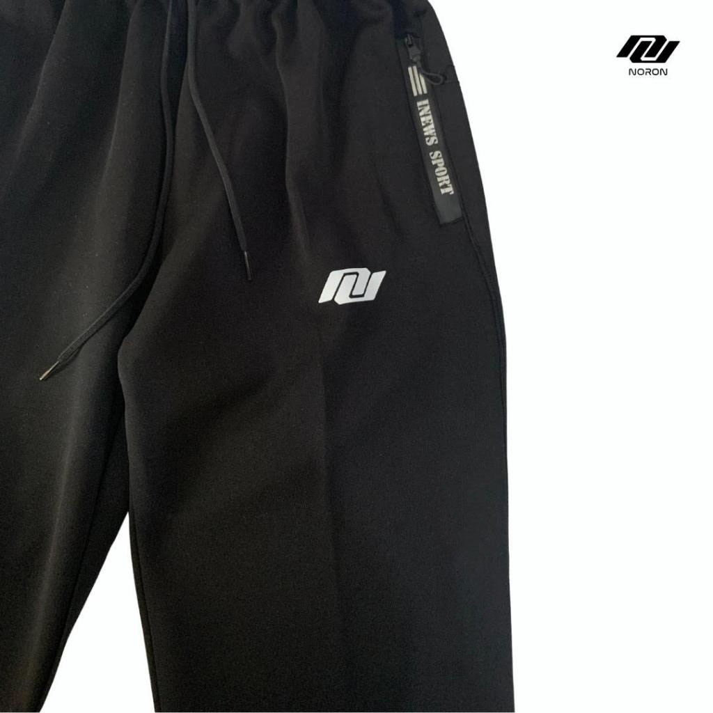 NORON - Celana Olahraga Training Sport Panjang Jogger Hitam Bisa untuk Pria & Wanita Running Gym Noron White Logo