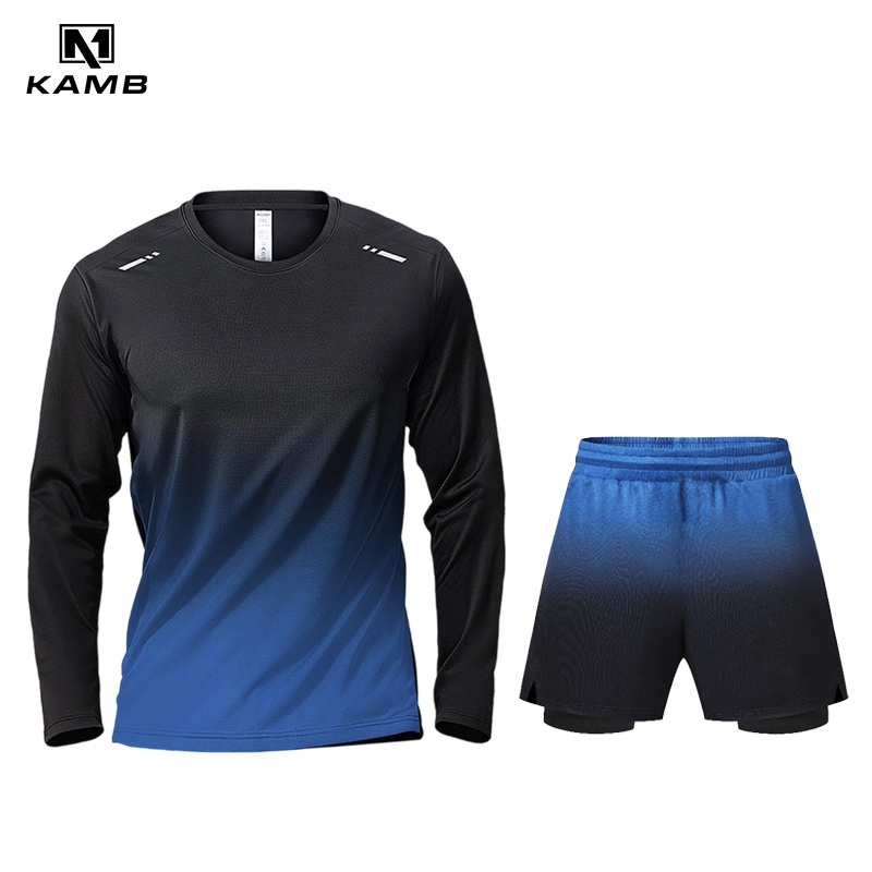 KAMB Setelan Olahraga Pria Anti Bakteri Joging Badminton Lengan Panjang + Celana Pendek