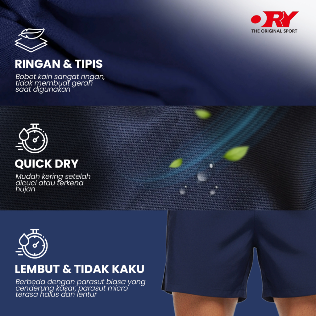 ORY FASHION Celana Olahraga Pendek Pria Running Outdoor Polos Cepat Kering Nyaman Bahan Parasut Micro 2093
