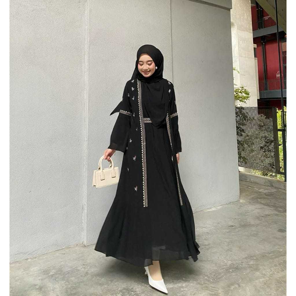 VEILORA WARDOBE Safwa Abaya Dress Ceruty Babydoll Aplikasi Bordir Cantik Gamis Abaya Wanita Teru