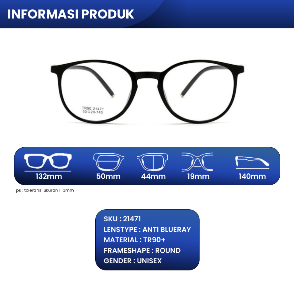 IOOI Eyewear - Kacamata Round TR90 Trend Modern Minus Photocromic kacamata minus photocromic pria wanita original