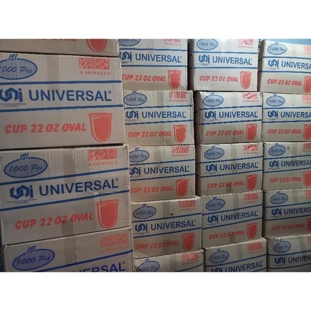GROSIR 1 KARDUS GELAS OVAL UNIVERSAL Gelas Plastik Merk Universal 22 Oz Oval 1 Dus Isi 20 Slop = 1.000 Pcs
