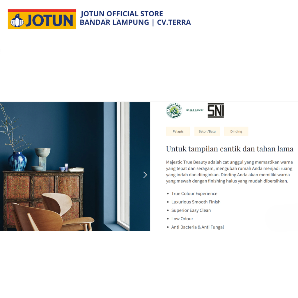 JOTUN MAJESTIC TRUE BEAUTY SHEEN - Cat Interior LUXURY / PREMIUM - 20 Liter