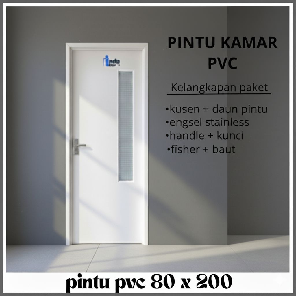 Pintu Kamar Tidur PVC 80 x 200 Long Kaca Es Minimalis Estetik