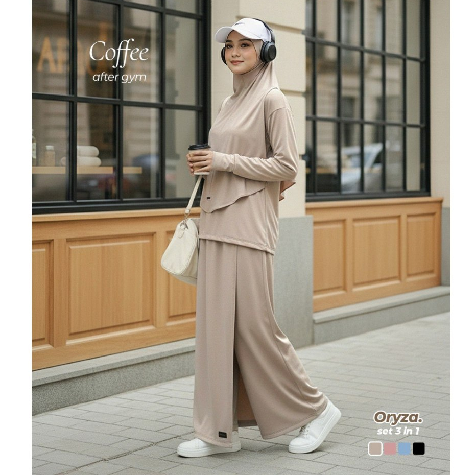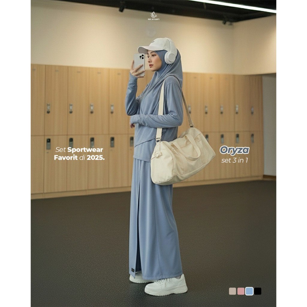 BE.SYAR'I x ZANEVA – Oryza Full Set Baju Olahraga Muslimah | Hijab Instan + Baju + Celana Rok Syari