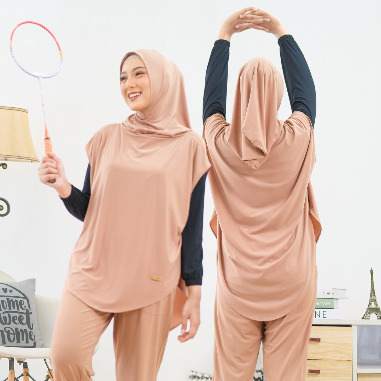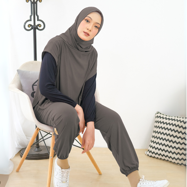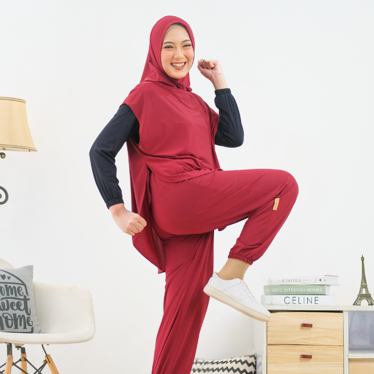 HELAIRINDU - Setelan Hijab Olahraga Wanita Outer Hijab dan Celana Bahan Royal Jersey