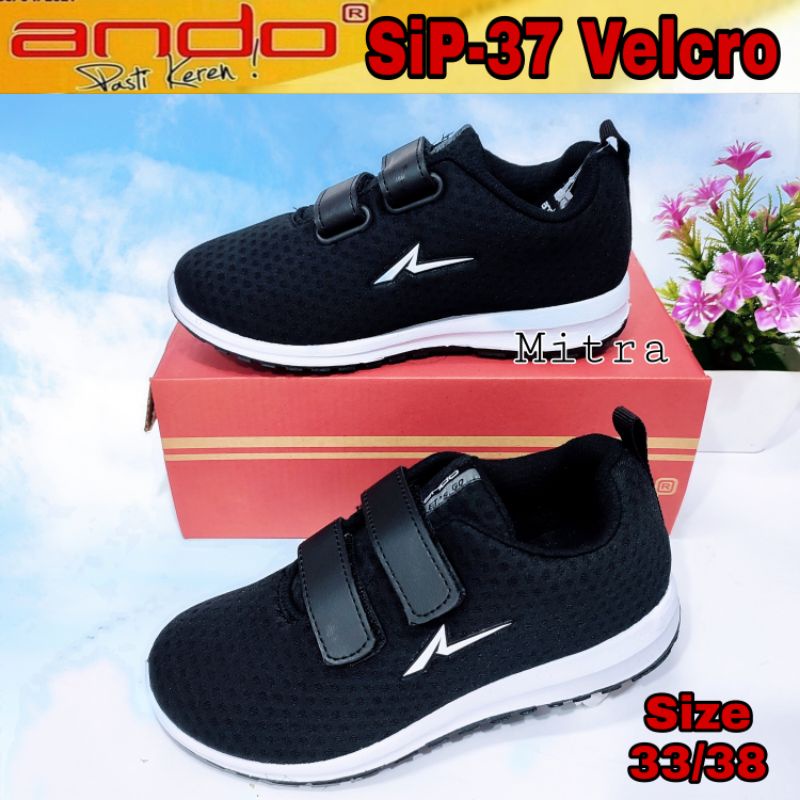 ANDO Sepatu Sekolah Anak Kecil Remaja Perempuan Velcro Perekat Tempel Hitam Putih Size 31sd 36 Original Murah Berkualita
