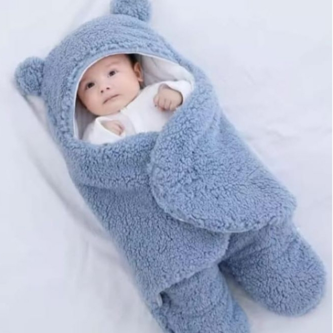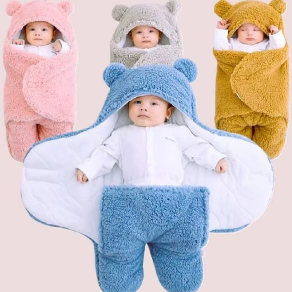 selimut bayi bedong instan karakter bulu tebal halus lembut 0-1tahun Hadiah Buat Lahiran