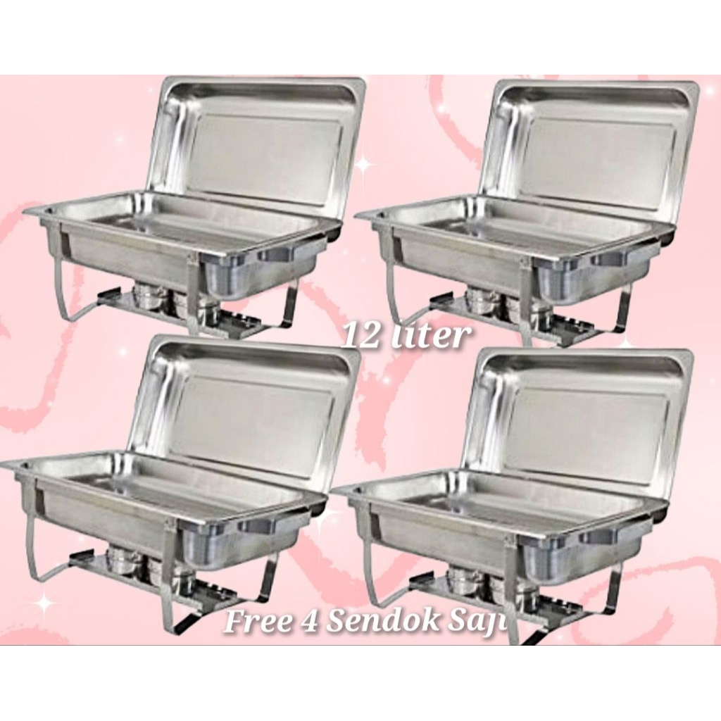 Paket 4 Set Prasmanan Jumbo 12 Liter 1 Wadah/Tray Square Chafing Jumbo - Free 4 buah Sendok Sayur