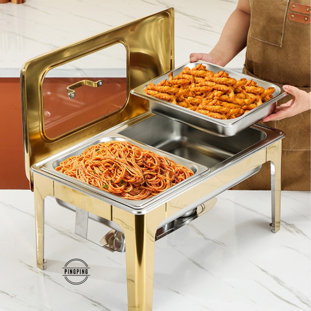 Chafing Dish / Rolltop Segi Kaca Kecil Catering Stainless Steel/tempat prasmanan stainless/tempat prasmanan/set tempat l