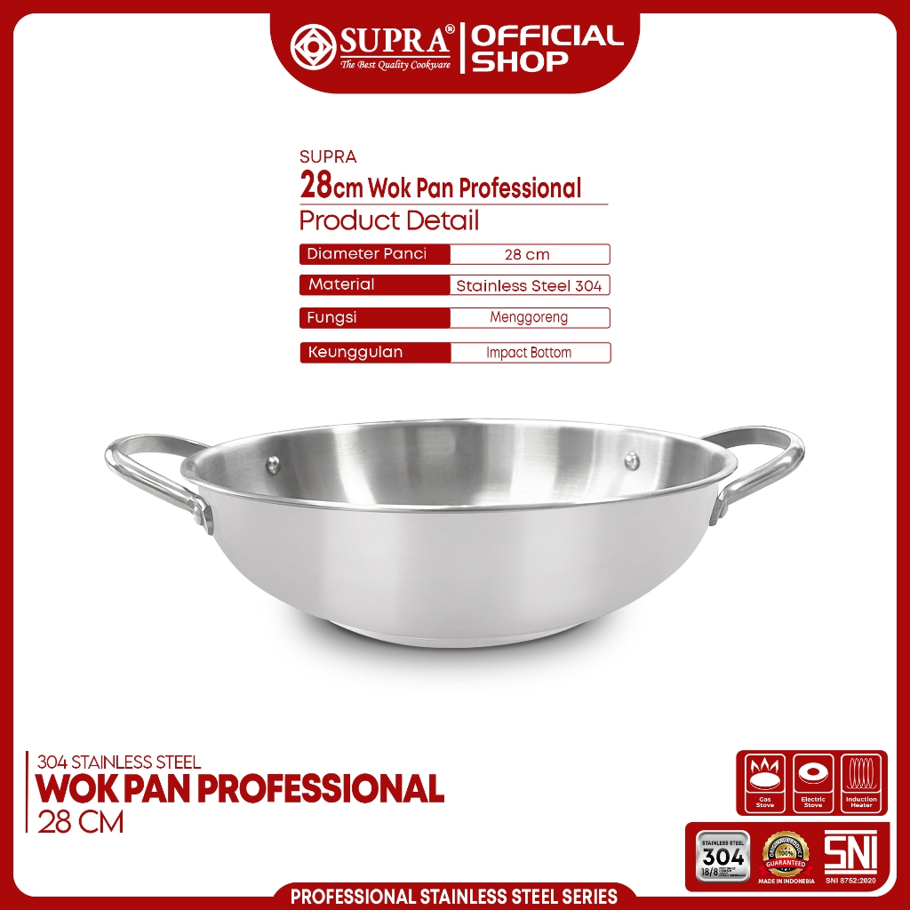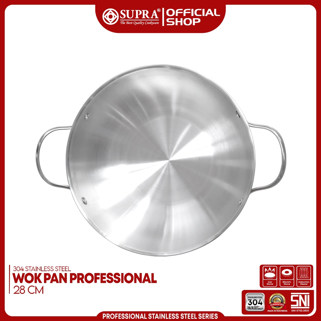 SUPRA Panci Wajan Penggorengan Stainless Steel SUS 304 Wok 28 Cm Professional Series