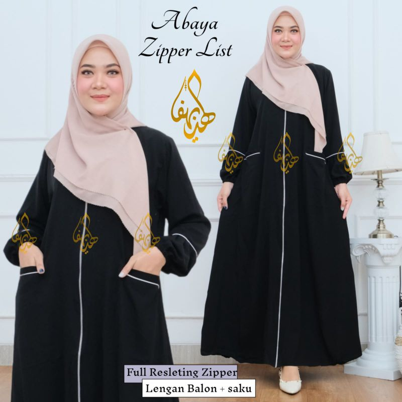 Gamis Abaya Arab Hitam List Busui Bahan Jet Black Saudi Kwalitas Terjamin