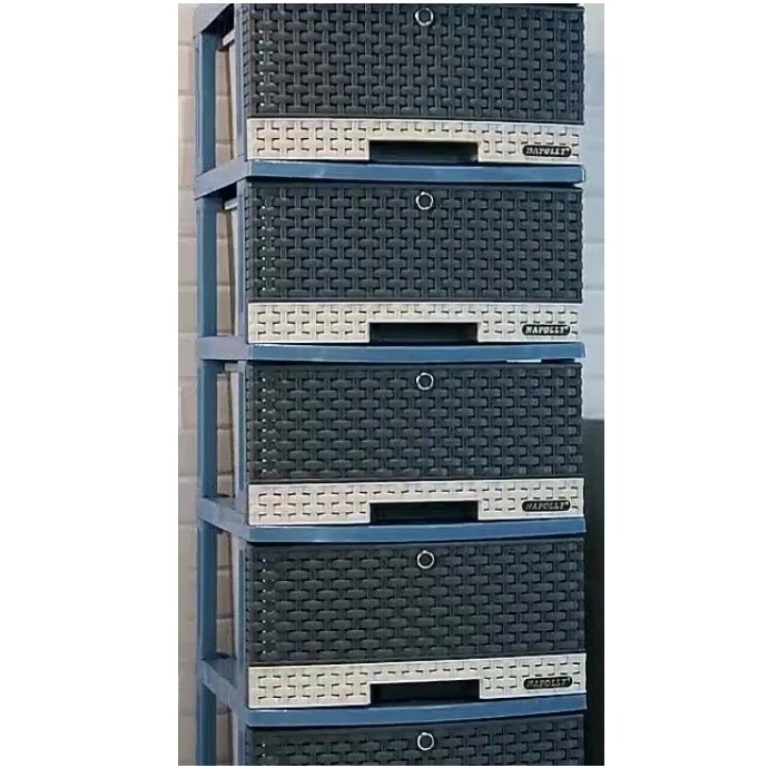 Lemari - rak baju - rak susun - lemari pakaian - NAPOLLY Lemari Plastik Laci Serbaguna Rotan 5 Susun BAGUS KOKOH