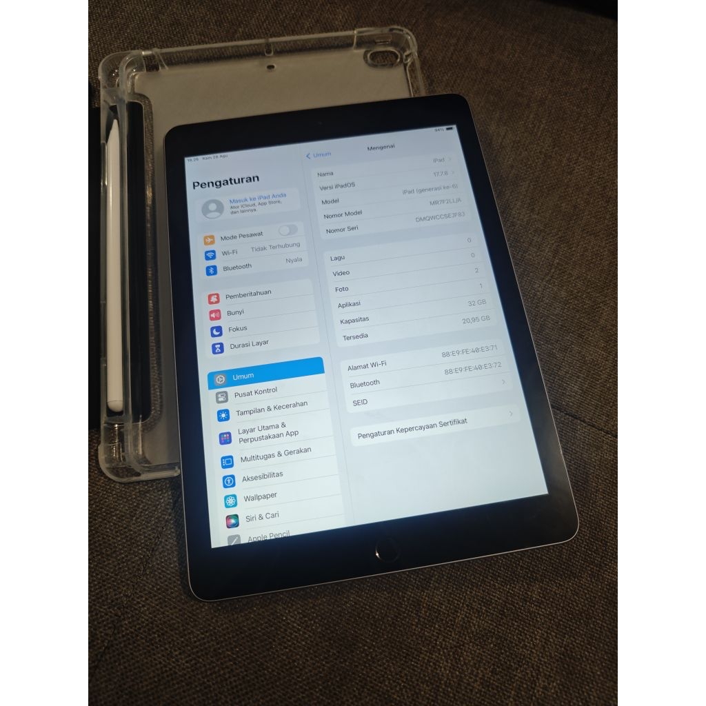 Ipad 6 32gb Wifi Full Set Ios17 94 PERSEN Mulus