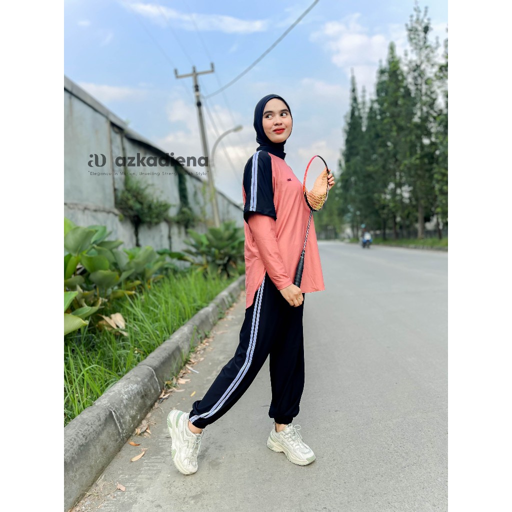 Azkadiena Setelan Baju Olahraga Azikra Wanita Berhijab 3 In 1 Celana Joger Perempuan