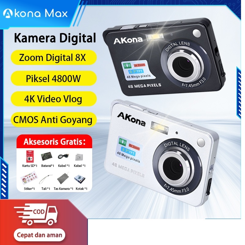 Kamera Digital Akona Mini 48MP 8X Zoom Digicam LCD 2,7 Inci 4K Vlog Anti Goyang Filter Kamera
