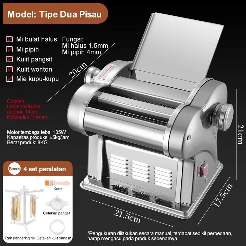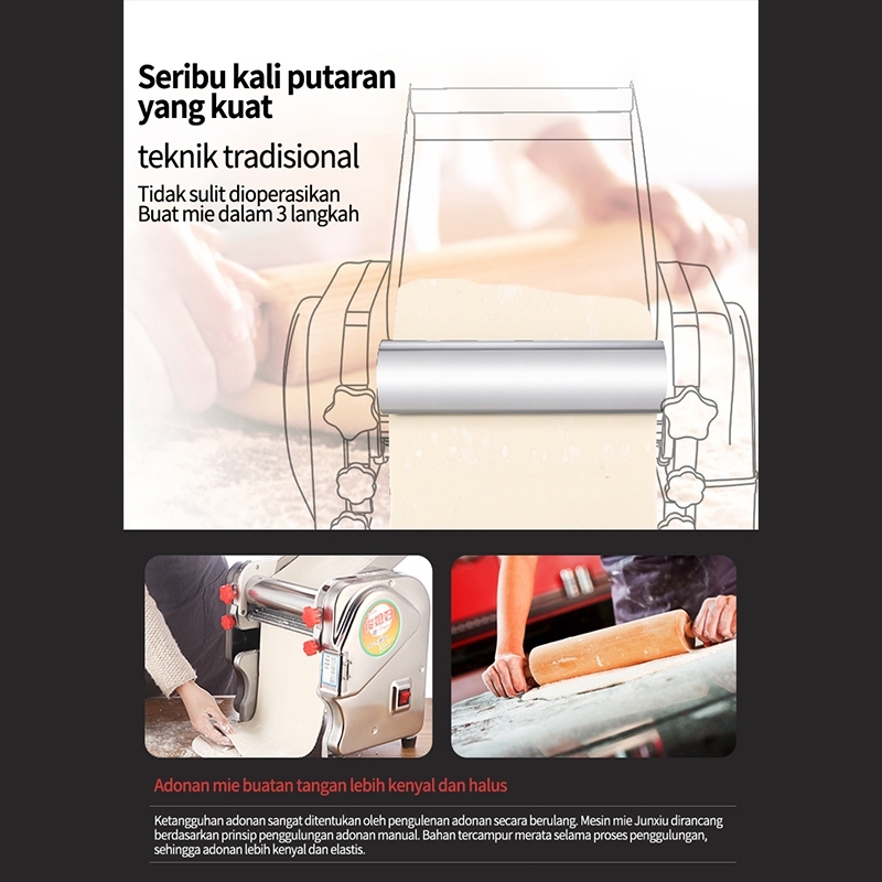Noodle Pasta Maker/ Mesin mie Penggiling mie Gilingan Mie Pasta Molen Kulit Pangsit Stainless Steel A-905 /Mesin Mie Listrik