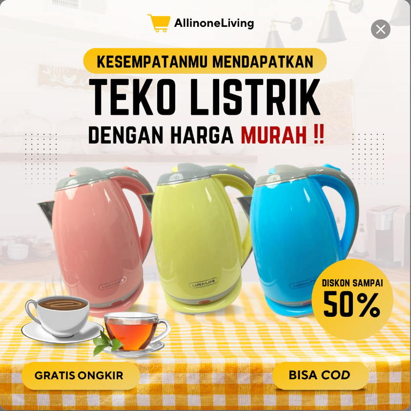 LUNALIFE Teko Listrik Pemanas Air Listrik Electric Kettle 2 Liter 500 Watt Official Warranty SNI
