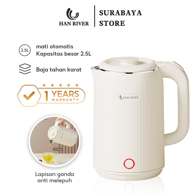 HAN RIVER HRDSH01 Teko Listrik Air Kaca Stainless Steel Transparan Kettle Boiling Water 2.5L