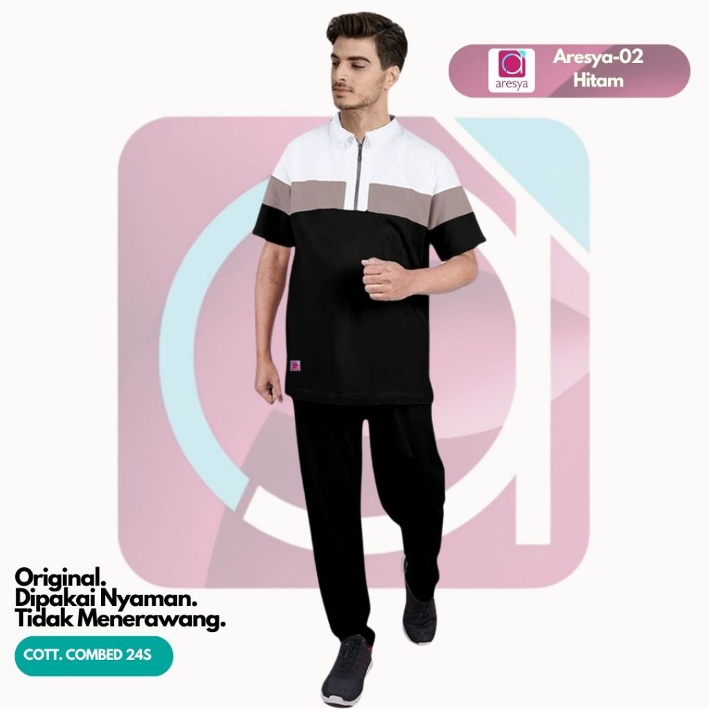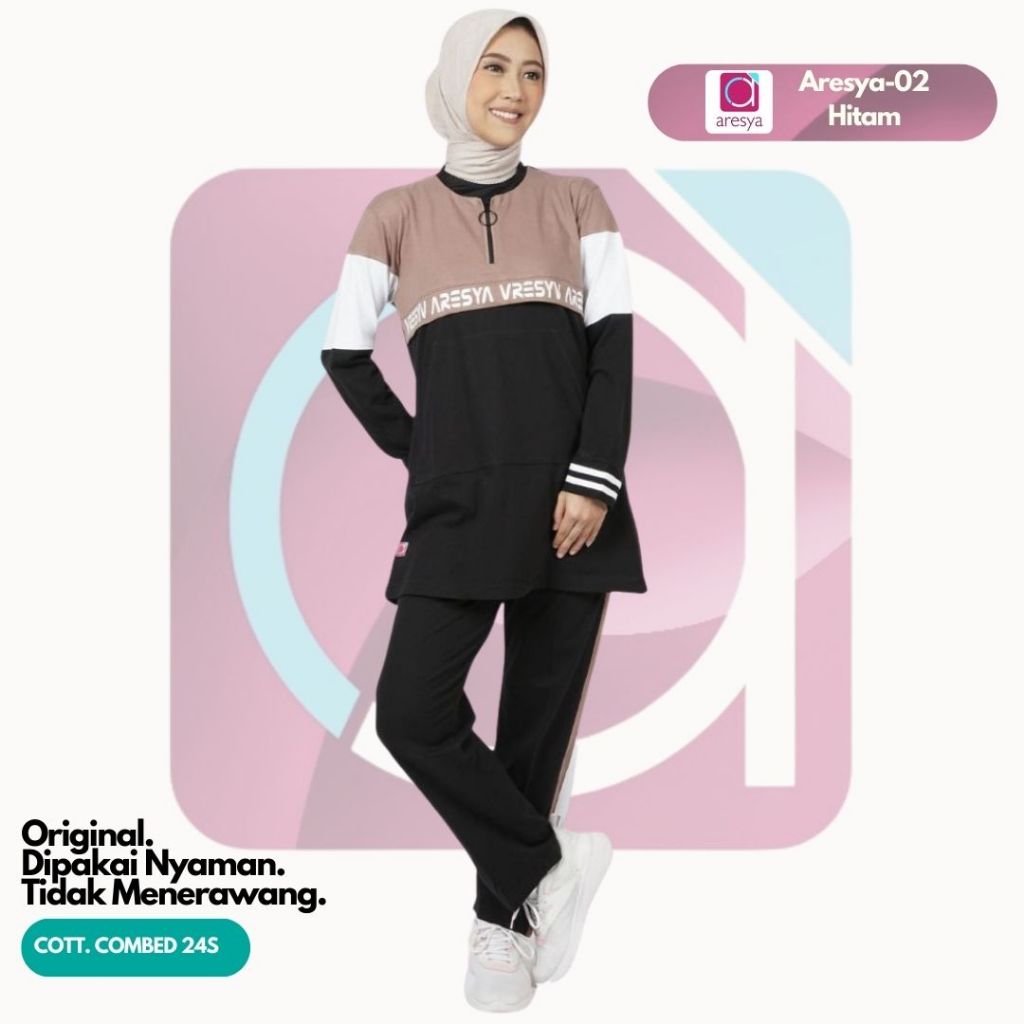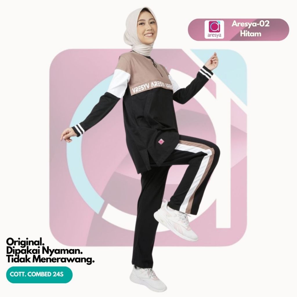 ARESYA - Setelan Baju Olahraga Couple Pria Wanita Muslim Aresya-02 Hitam