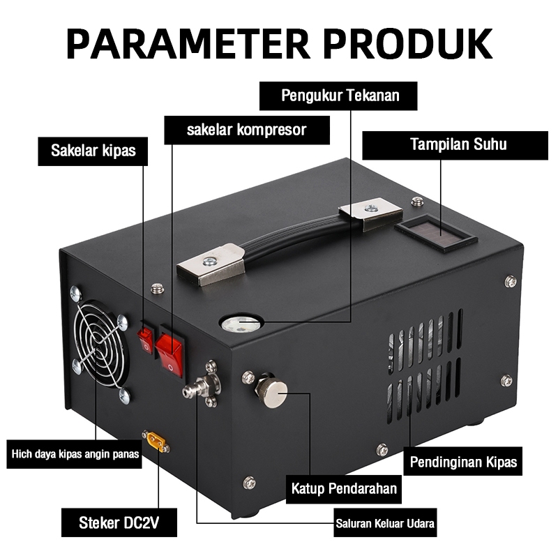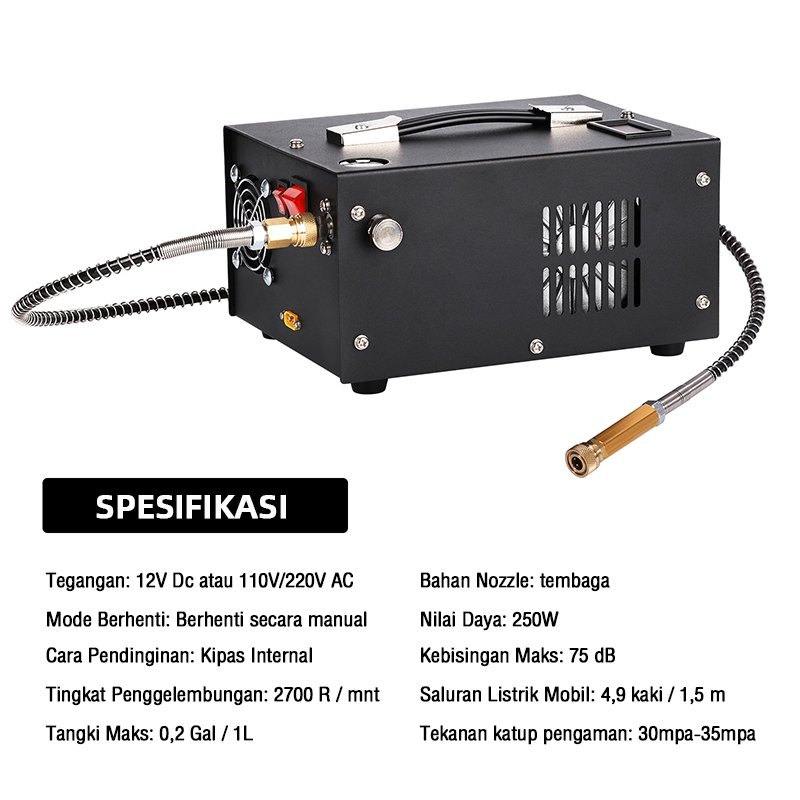 Kompresor Mini Portable 12v 4500psi 40Mpa Air Compressors Kompresor Pcp Elektrik Berlaku Untuk Oxygen Tabung12V 4500PSI/40MPa Portable El