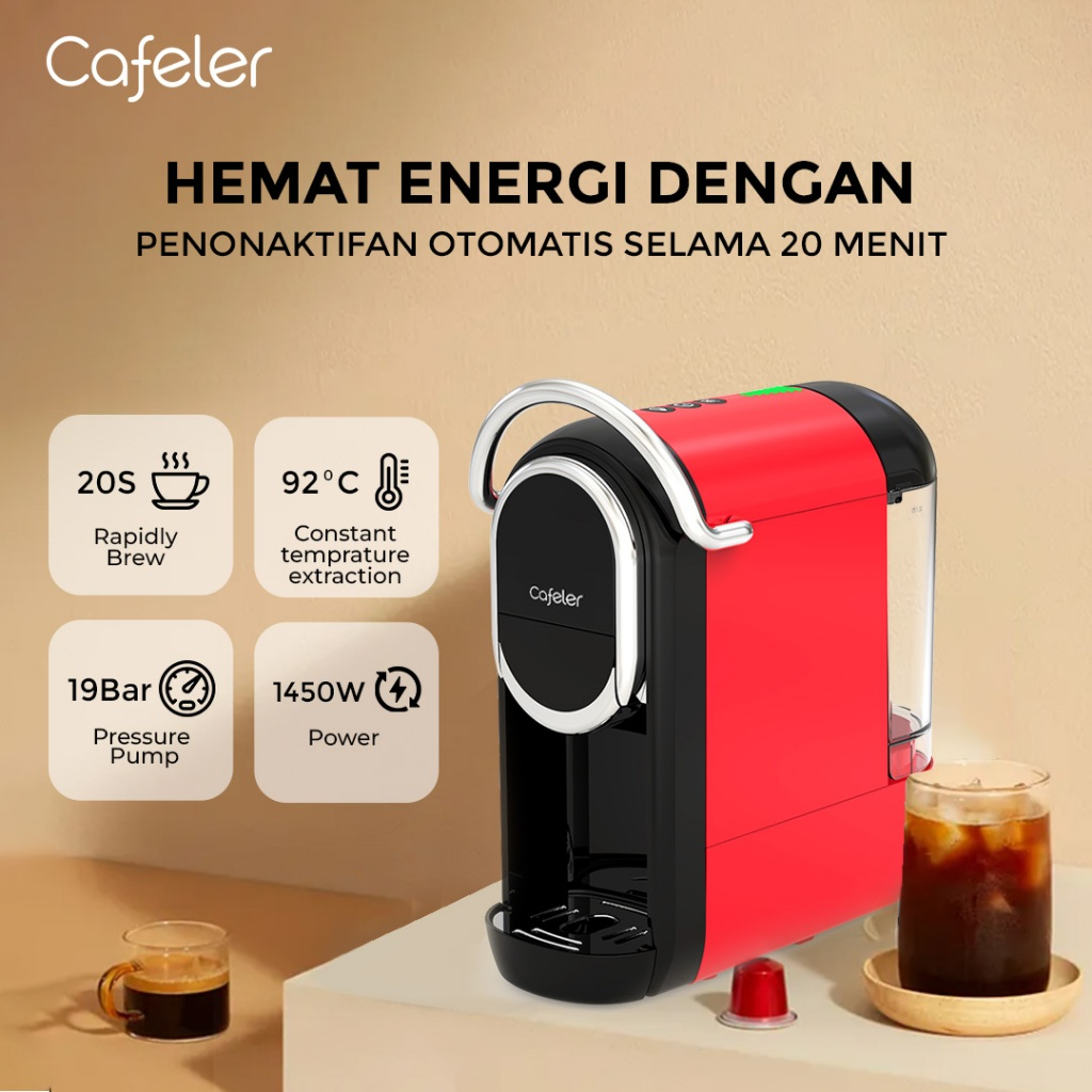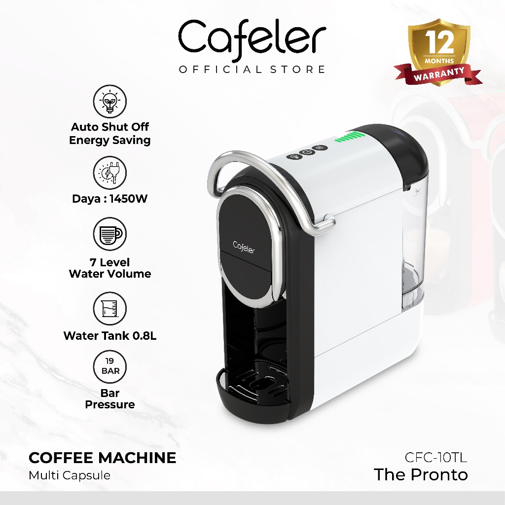 Cafeler Mesin Kopi Multi Kapsul 3IN1 Ekstraksi Hangat 7 Level Water Volume Capsule Coffe Maker 19Bar