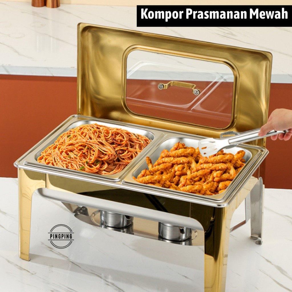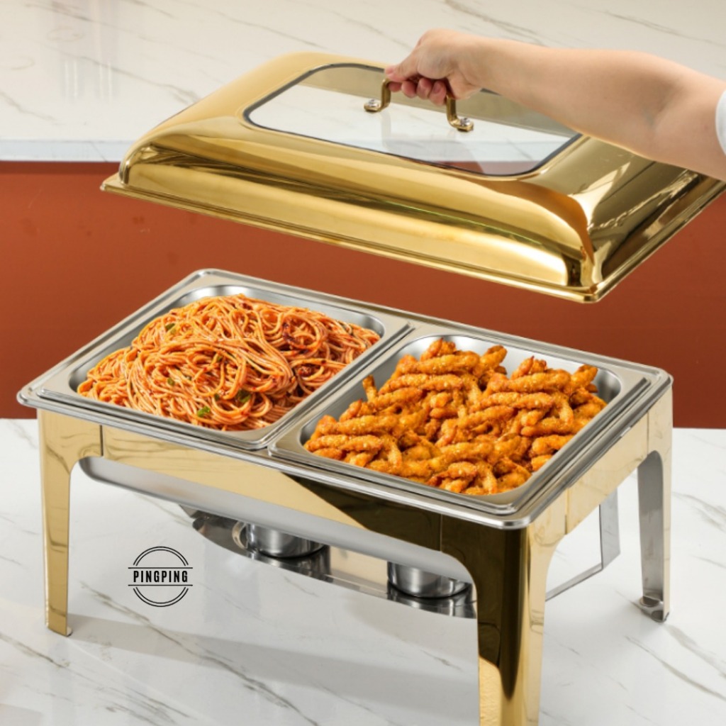 Chafing Dish / Rolltop Segi Kaca Kecil Catering Stainless Steel/tempat prasmanan stainless/tempat prasmanan/set tempat l