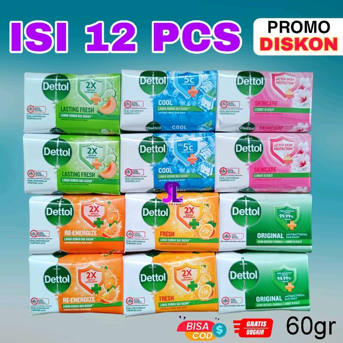 PROMO DISKON 12PCS SABUN DETTOL 60 GRAM MIX RANDOM - DISKON