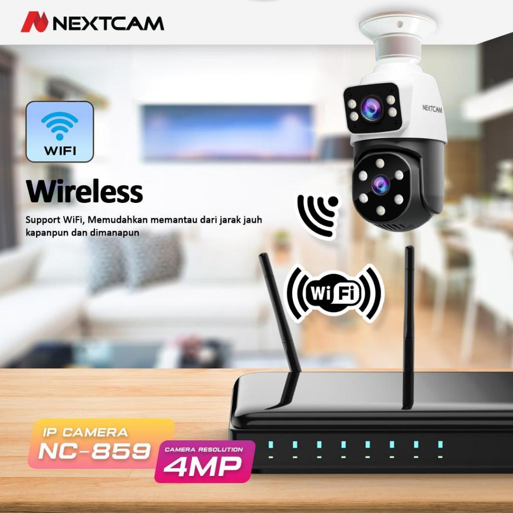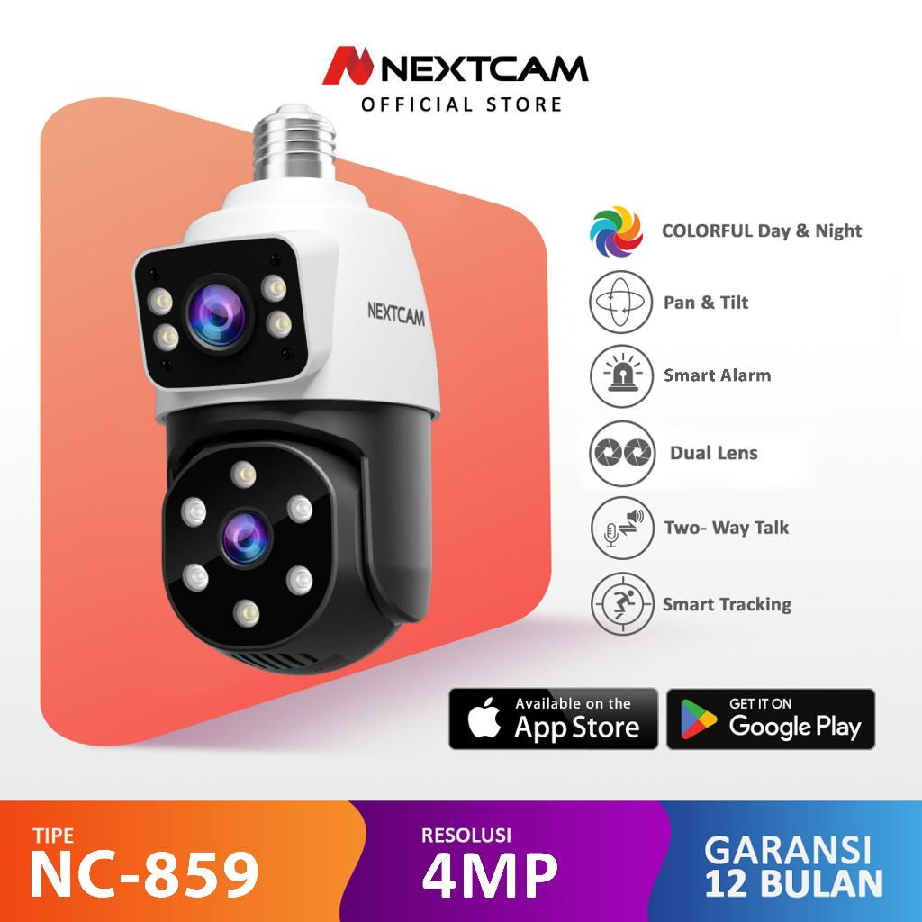 Nextcam Kamera cctv Ipcam Bolam cctv Bola Lampu Dual Lens Dual Kamera 4MP 2.4G WiFi PTZ+Fixed lens Bisa putar 360 deraja