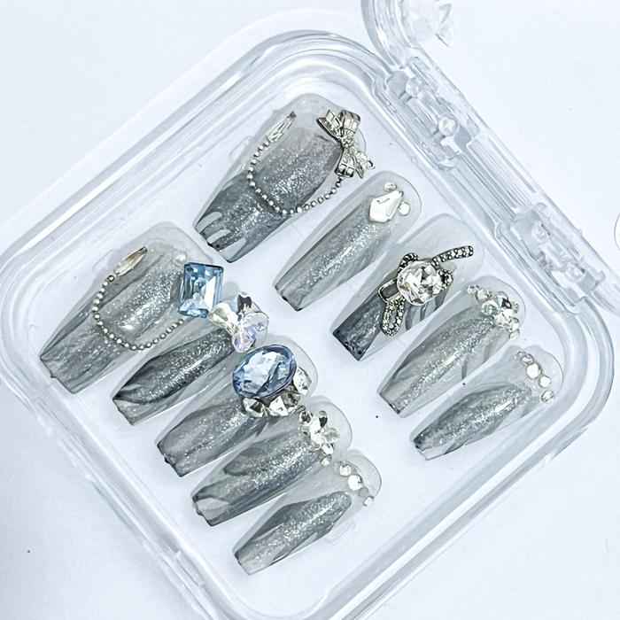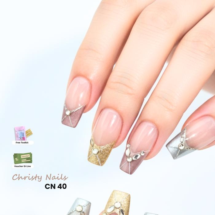 CN40 - CHRISTY NAILS KUKU PALSU 3D KOREA STYLE ELAGANT NUDE GRADIENT NAIL ART WITH DAYMEN PRESS ON NAILS HANDMADE PREMIU