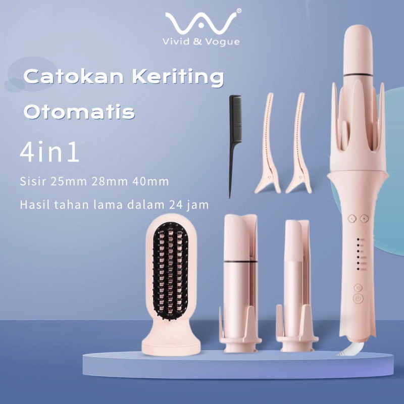 Onlife Ion Negatif 4 IN 1 Catokan Curly Otomatis Ceramic Hair Styler Multifungsi Hair Straightener Comb Catokan Keriting