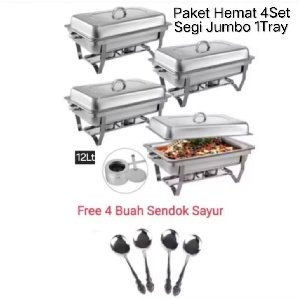Chafing Dish / Prasmanan Segi Jumbo Paket Hemat 4Set + Bonus 4Pcs Sendok Sayur Premium Quality Stainless Steel