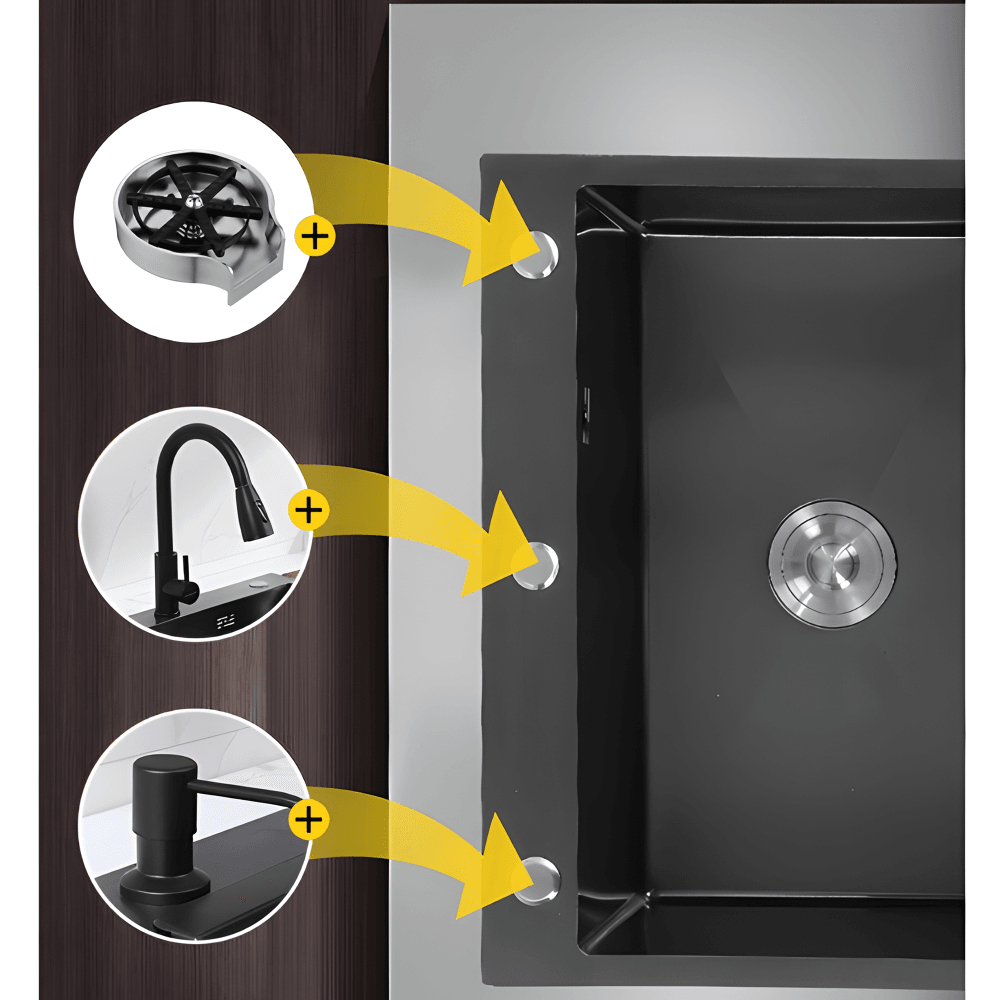 HOME Yaro- Stainless Steel Kitchen sink Modern Kitchen Sink Paket Kitchen Sink BLACK/Perak Bak Cuci Piring Stainless Hitam Dengan Keran Tarik Keluar/B