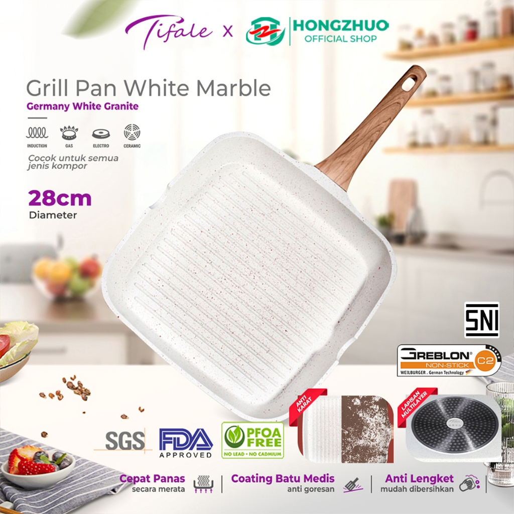 Tifale Grillpan 28 CM White Granit Grill Pan Peralatan Masak Dapur Anti Lengket Panci Mpasi