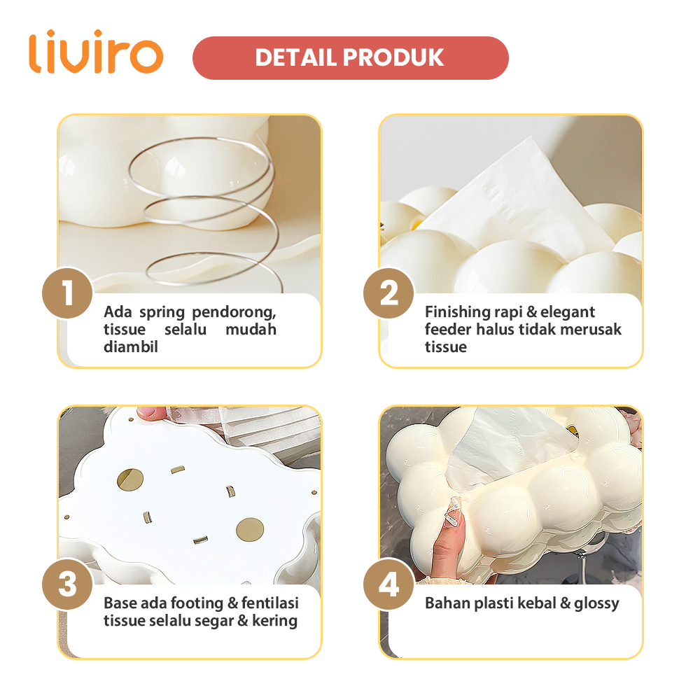 Liviro Tempat Tisu Boba Kotak Tisu Aestethic Mewah Ornamen Ruang Tamu Plastik Estetik Premium