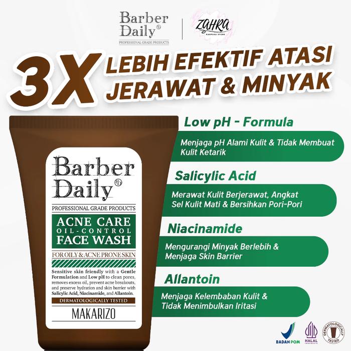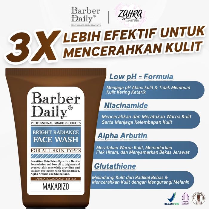 BARBER DAILY BRIGHT RADIANCE & ACNE CARE FACE WASH 100ML - PEMBERSIH WAJAH MENCERAHKAN & KONTROL MINYAK BERLEBIH DENGAN